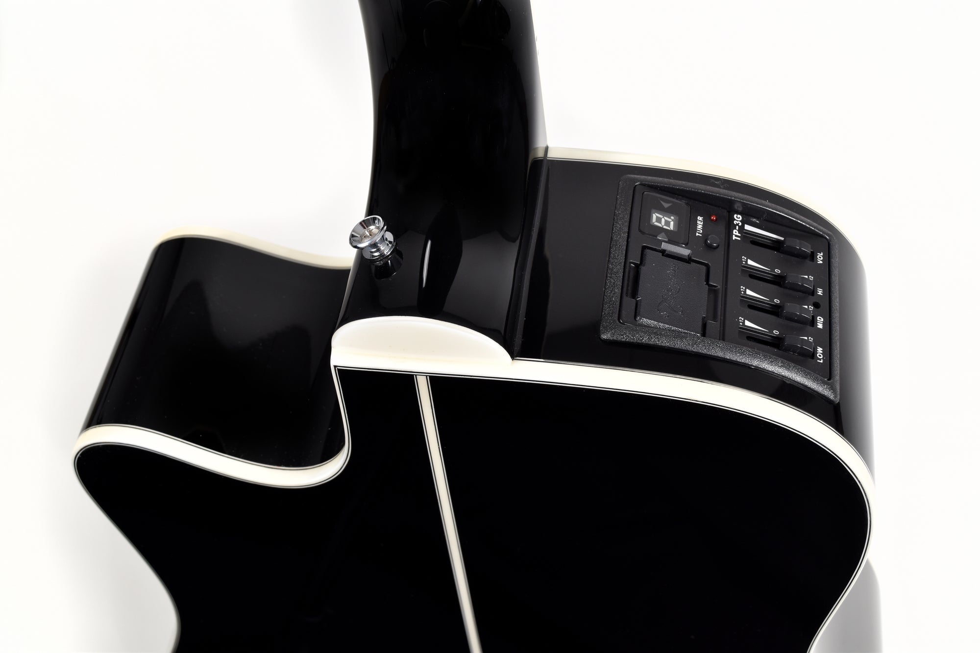 For performers, the GD38CE-BLK comes equipped with Takamine's TP-3G preamp system, featuring a built-in tuner and three-band EQ. This setup provides excellent amplified performance and versatility, allowing you to tailor your sound to any venue or musical setting.